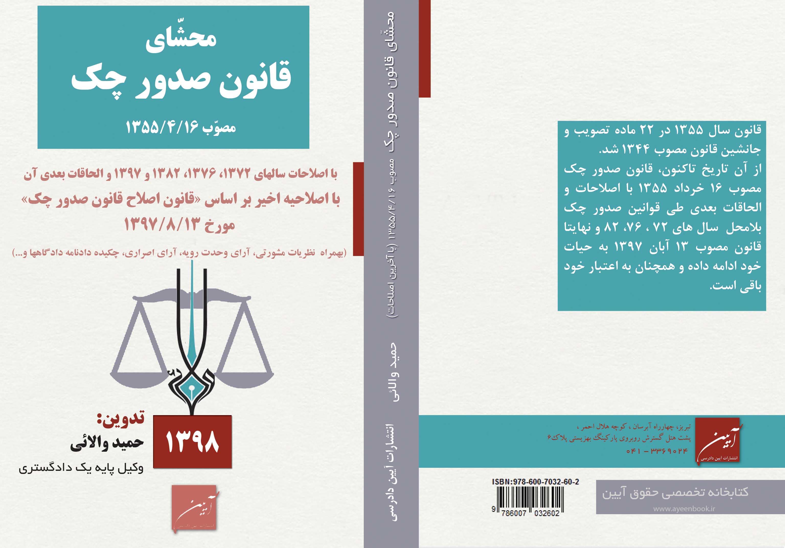 محشی قانون صدور چک مصوب ۱۶/۴/۱۳۵۵ با اصلاحات سالهای 1372، 1376، 1382 و 1397 و الحاقات بعدی آن با اﺻﻼﺣﯿﻪ اخیر بر اساس «قانون اصلاح قانون صدور چک» ﻣﻮرخ 13/8/1397